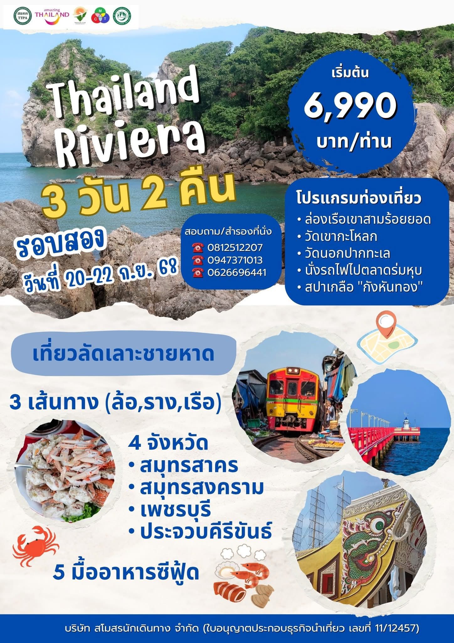 เรื่อง/ภาพ สุเทพ ช่วยปัญญา สำนักข่าวท่องเที่ยวและสิ่งแวดล้อม ร่วมกับ การท่องเที่ยวแห่งประเทศไทย สำนักงานสมุทรสงคราม ท่องเที่ยวและกีฬาจังหวัดสมุทรสงคราม จัดโครงการ Thailand Riviera ฝั่งตะวันตกอ่าวไทย 4 จังหวัดสมุทรสาคร สมุทรสงครามเพชรบุรี และประจวบคีรีขันธ์ เป็นการท่องเที่ยวชมความงดงาม ถนนริมทะเลเลียบชายฝั่ง สัมผัสวิถีชุมชนท้องถิ่น ล่องเรือดูเขาจูบกัน