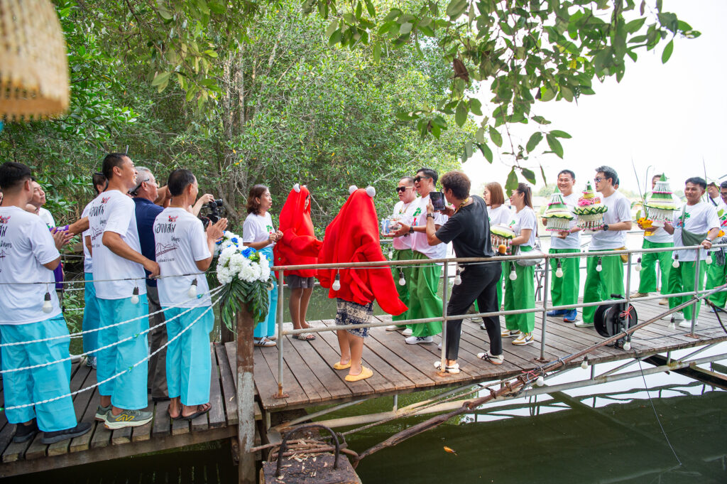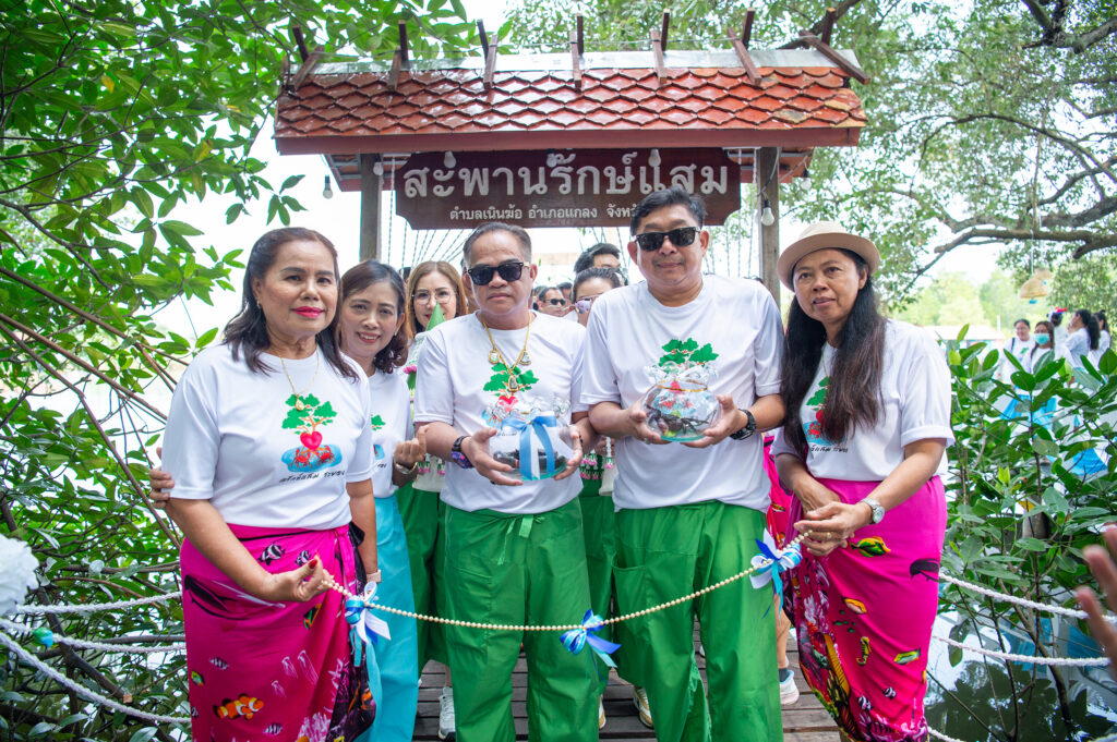 ส่งเสริมการอนุรักษ์สิ่งแวดล้อม ด้วยการนำต้นโกงกางที่นำมาเป็นสินสอด มาปลูกบริเวณเชิงสะพานรักษ์แสม ปล่อยพี่สมุทร ปูดำ ปูแสม จากสมุทรสงคราม และน้องแสม ปูแสม ปูดำจากระยอง ให้แพร่พันธุ์ออกลูกออกหลานตามธรรมชาติต่อไป
