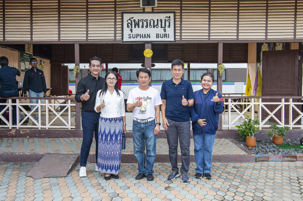 นายณัฐภัทร สุวรรณประทีป ผู้ว่าราชการจังหวัดสุพรรณบุรี พร้อมด้วย นายวิษณุ อรุณบำรุงวงค์ รองผู้อำนวยการภูมิภาคภาคกลาง การท่องเที่ยวแห่งประเทศไทย นายอภิวัฒน์ ทับทิมโต ผู้อำนวยการการท่องเที่ยวแห่งประเทศไทย สำนักงานสุพรรณบุรี นายกันตพงษ์ ธนเนืองโรจน์ นายกสมาคมธุระกิจท่องเที่ยวไทย (สธทท.) นายพงษ์ดนัย ตาระกา นายสถานีรถไฟสุพรรณบุรี ร่วมให้การต้อนรับคณะนักท่องเที่ยว “นั่งรถไฟ KIHA 183 มหัศจรรย์เมืองสุพรรณบุรี แหล่งอารยธรรมทราวดี สุขทันที ที่เที่ยวกับการรถไฟไทย การเดินทางครั้งนี้ไม่เหมือนเดิม”