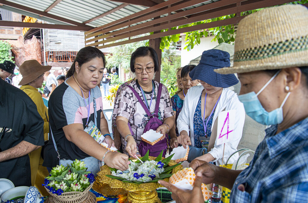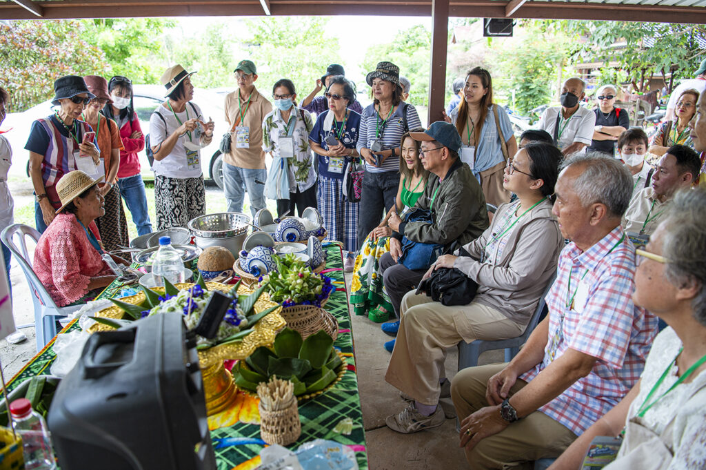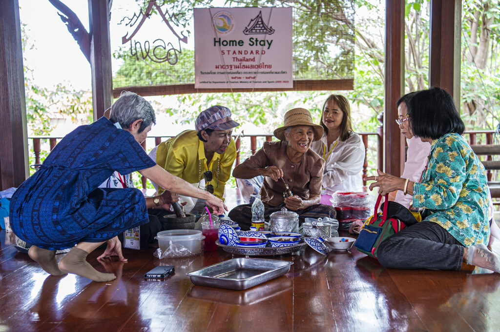 กิจกรรมที่ให้คณะนักท่องเที่ยวทำมีทั้งหมด 5 ฐาน อย่างแรก สาธิตการ น้ำพริกเผาโบราณ ทำขนมเจ้าบ้านเจ้าเรือน ทำดอกไม้จากธูปหอม ทำจานจากผักตบชวา และการทำพวงมาลัยจากดอกไม้แห้ง คณะนักท่องเที่ยวทั้ง 5 บัส เข้าร่วมทำกิจกรรม หมุนวนกันไปจนครบทั้ง 5 ฐาน ได้รับประสบการณ์ใหม่ๆกันไปบ้างไม่มากก็น้อย จากนั้นก็รับประทานอาหารเที่ยงกันที่ ไผ่ตาพุด โฮมสเตย์ ชุมชนบ้านแหลม