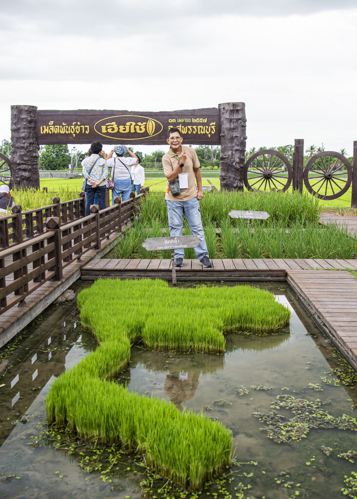ไฮไลท์ หอเตือนภัยชาวบ้าน เดินขึ้นไปบนหอแล้วมองลงมาจะเห็น แปลงนาสวยที่ปลูกให้เป็นรูปต่างๆ เช่นแผนที่ประเทศไทย ด้วยการปลูกข้าวสีเขียวสลับกับต้นข้าวสีดำ แบบการแปรอักษรรูปแบบๆ ไปตาม Concept ของวันสำคัญต่างๆ นอกจากนี้นาเฮียใช้ก็ยังมีสถานีต่างๆให้ชมกันอีกหลายจุด