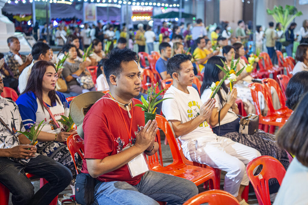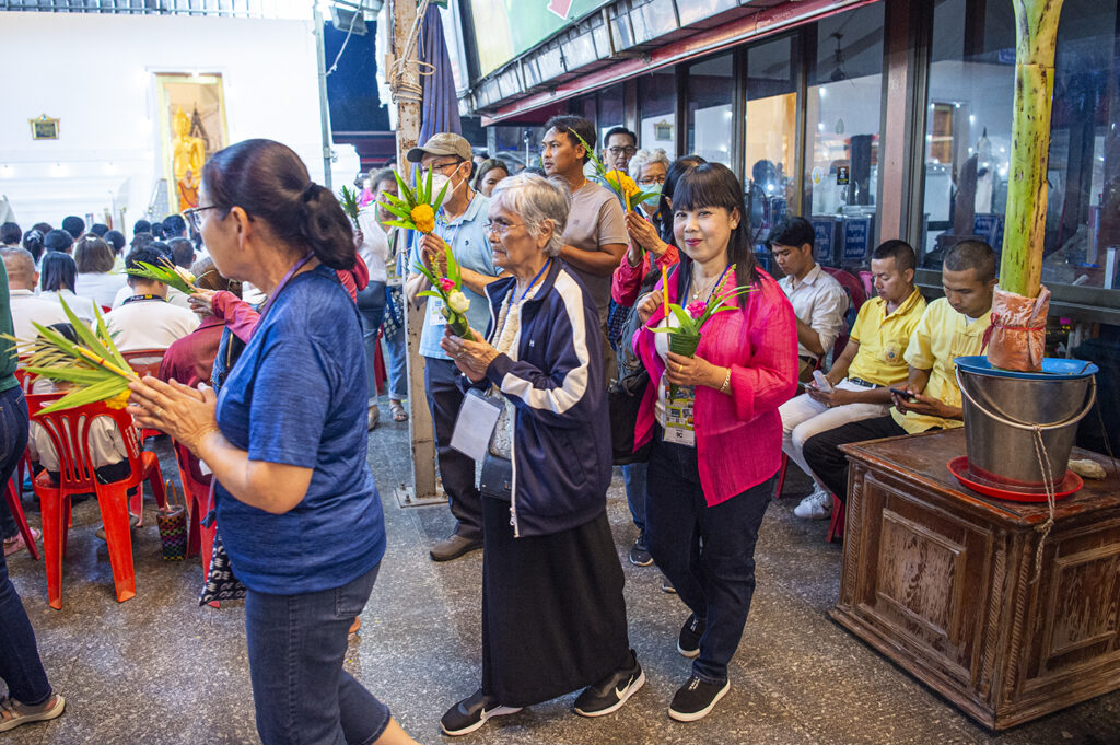หลังจากทานข้าวเย็นอิ่มอร่อยที่ นาเฮียใช้ เสร็จแล้ว คณะนักท่องเที่ยวก็กลับมาเวียนเทียนที่ วัดป่าเลไลยก์วรวิหารอีกทีในตอนเย็น นั่งสวดมนต์เย็น ต่อด้วยเวียนเทียน เสร็จแล้วก็กลับเข้าที่พัก
