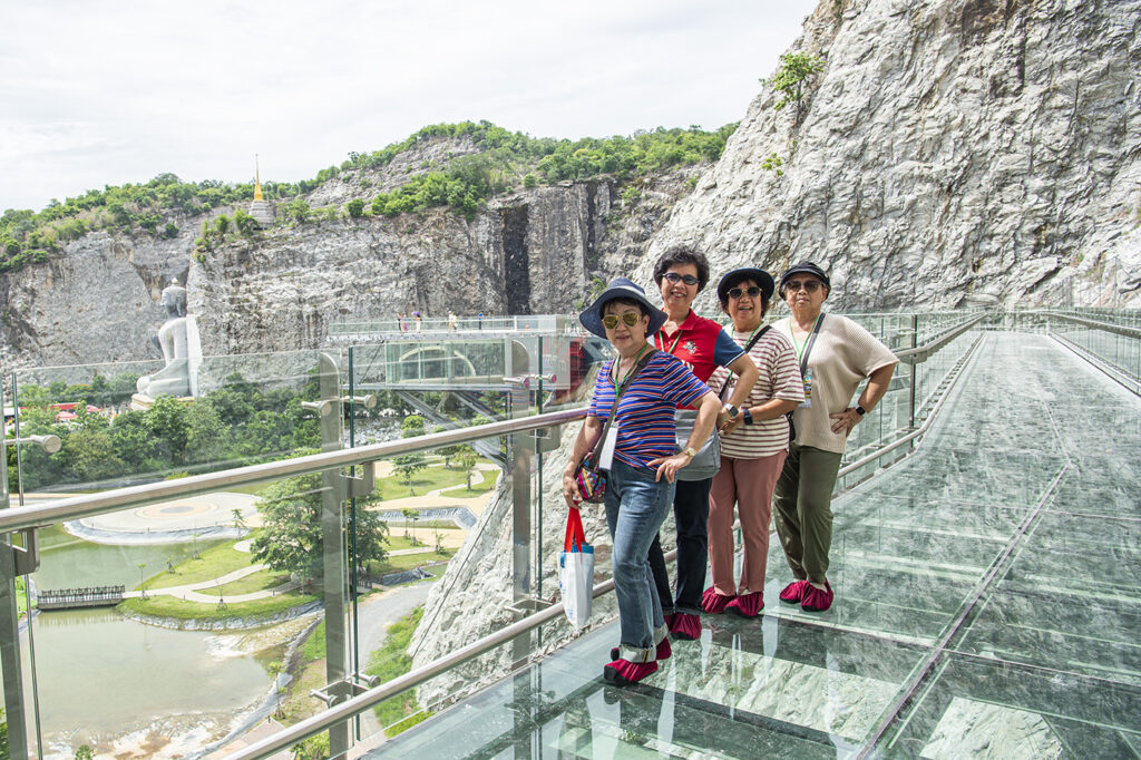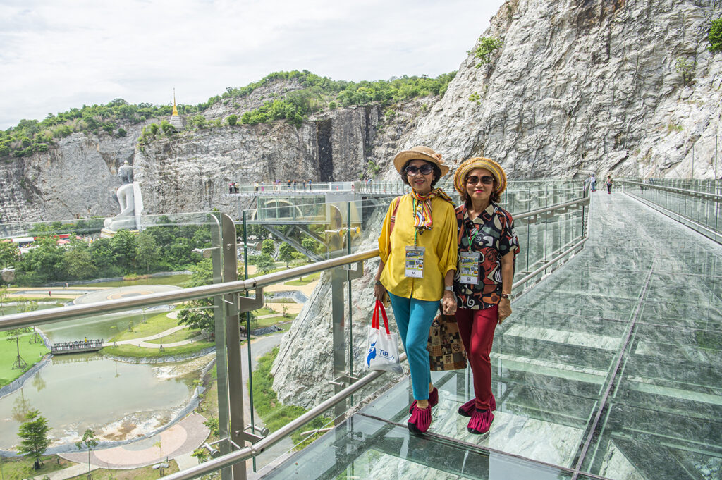 ในทริปนี้ คณะนักท่องเที่ยว รถไฟ KIHA 183 มีโอกาสพิเศษได้ขึ้น Sky Walk ที่วัดเขาทำเทียม ซึ่งเป็น สถานที่ท่องเที่ยวใหม่ล่าสุดของจังหวัดสุพรรณบุรี ซึ่งตอนนี้ยังไม่ได้เปิดให้ท่องเที่ยวอย่างเป็นทางการ แต่เป็นความโชคที่ของคณะนักท่องเที่ยว รถไฟ KIHA 183 ที่ได้รับอนุญาตจาก ท่องเที่ยวและกีฬาจังหวัดสุพรรณบุรี ให้ขึ้นไปถ่ายรูปบน Sky Walk และชมความสวยงามของ องค์หลวงพ่ออู่ทอง ในมุมสูง