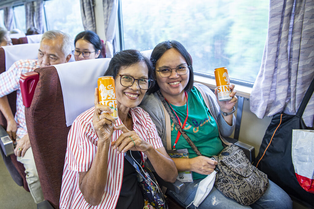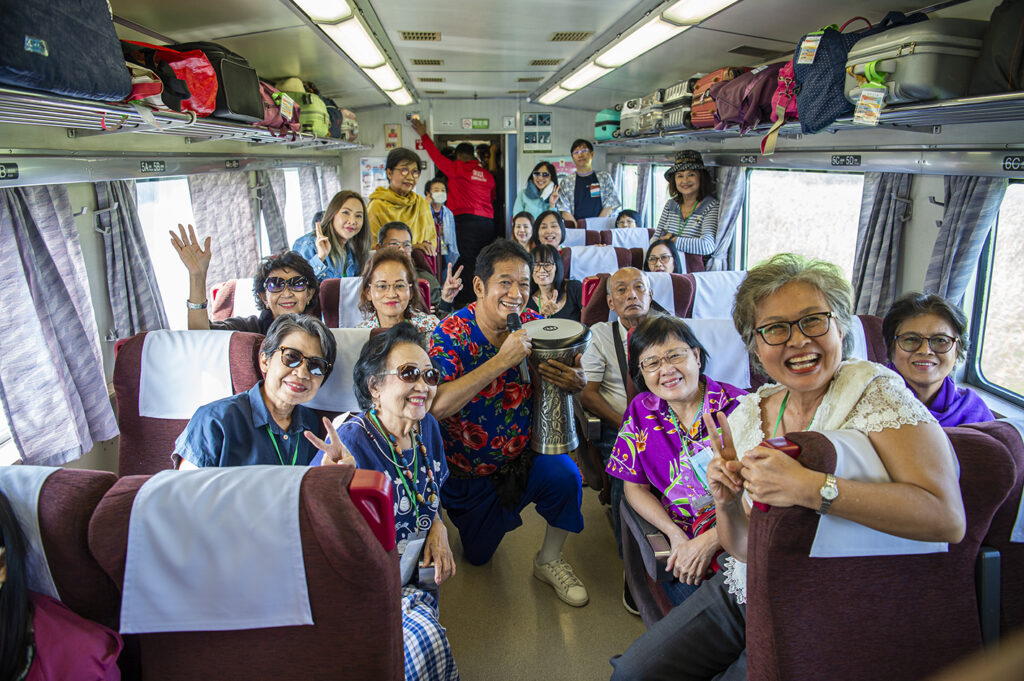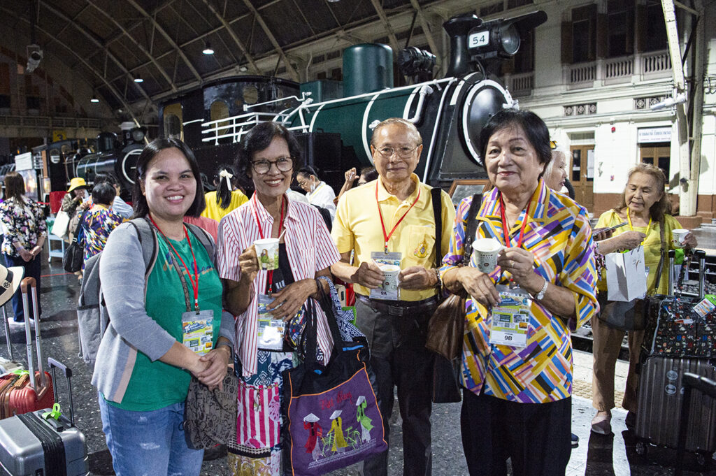 คณะนักท่องเที่ยวทยอยกันมาลงทะเบียน รับป้ายคล้องคอกันแต่เช้า ทีม Staff คอยกับลงทะเบียนและเสิร์ฟเครื่องดื่มร้อนให้กับนักท่องเที่ยว แล้วก็ถ่ายรูปเช็คอินเป็นที่ระลึกกับ ขบวนรถไฟ KIHA 183 และขบวนรถไฟโบราณ การรถไฟแห่งประเทศไทย จัดแสดงไว้ที่สถานีรถไฟหัวลำโพง รถไฟ KIHA 183 พร้อมออกเดินทางไปยังจุดหมายปลายทางสถานีรถไฟสุพรรณบุรี ในเวลา 6.10 น.