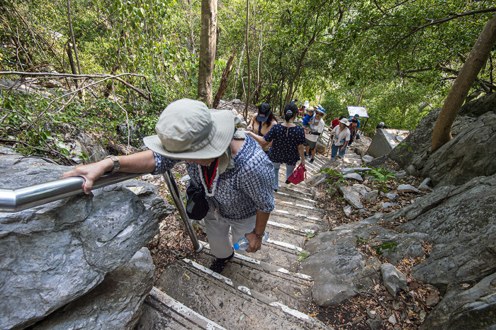 นักท่องเที่ยวต้องเดินขึ้นบันไดไปประมาณ 300 กว่าขั้น ก็จะถึงตัวถ้ำ ระหว่างทางมีจุดพักชมวิวอยู่ 2 จุด ก่อนถึงปากถ้ำมีระฆังให้ตีดังๆ แสดงว่านักท่องเที่ยวได้ขึ้นมาถึงหน้าถ้ำแล้ว ภายในถ้ำมีจุดน่าสนใจอยู่หลายจุด ลงจากปากทางเข้าไปภายในถ้ำ มีเจดีย์บรรจุพระบรมสารีริกธาตุประดิษฐานอยู่ ทางขวาเป็นถ้ำประกายเพชร มีหินงอกหินย้อยผิวระยิบระยับ คล้ายประกายเพชรมาชนกันเป็นแท่งมะเฟืองสวยงาม เดินเข้าทางด้านซ้ายของถ้ำ มีหินงอกหินย้อยรูปร่างคล้ายจระเข้ นักท่องเที่ยวมาเช็คอินถ่ายรูป ตามจินตนาการว่ากำลังต่อสู้กับจระเข้