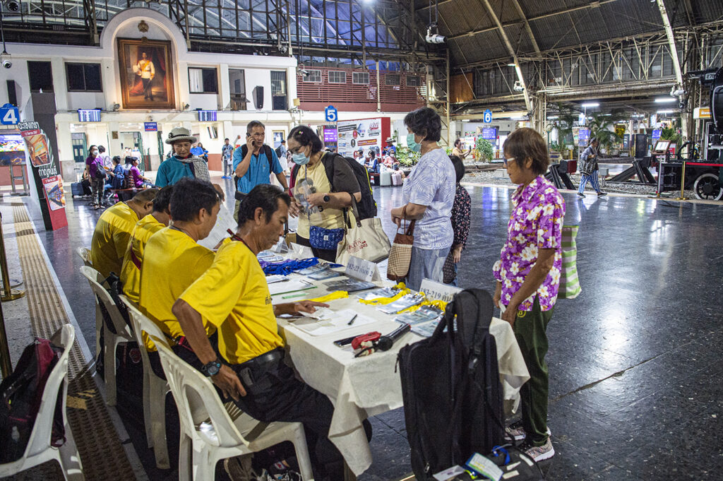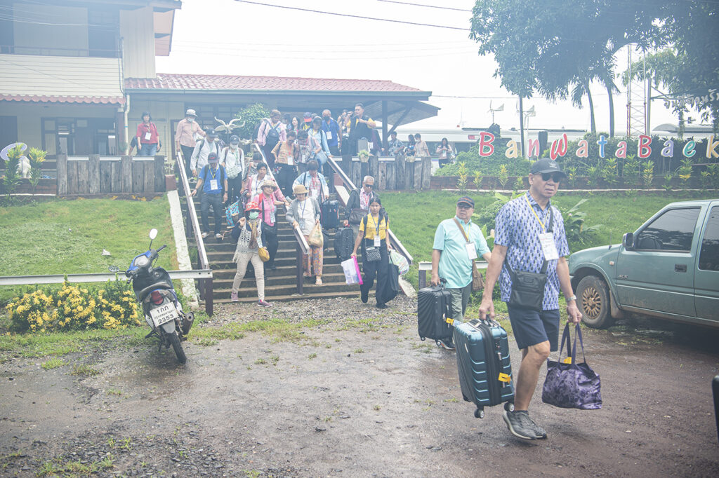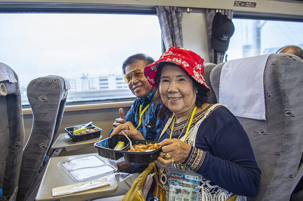 นักท่องเที่ยวเดินทางมาลงทะเบียน ที่สถานีกรุงเทพหัวลำโพง และรับป้ายคล้องคอกันแต่เช้า ลงทะเบียนเรียบร้อย รับเครื่องดื่มร้อน ชา กาแฟ โอวันติน จากนั้นถ่ายรูปเช็คอินก่อนขึ้น รถไฟ KIHA183 เพื่อเดินทางไปจังหวัดชัยภูมิในเวลา 6.00 นาฬิกา