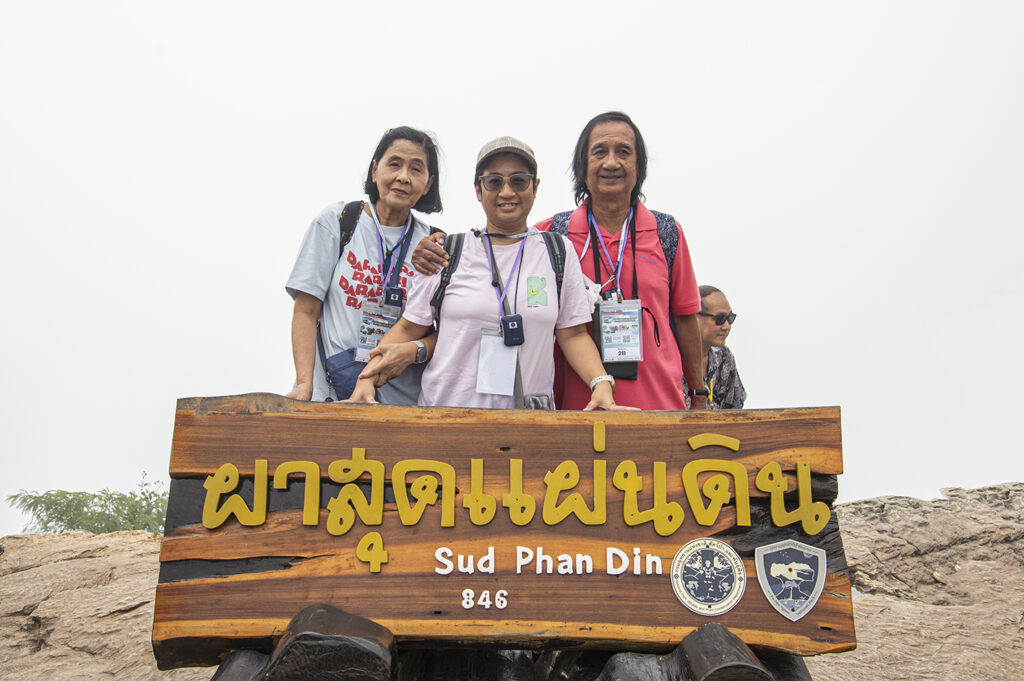 เช้าวันใหม่หลังจากทานอาหารเช้าที่โรงแรมแล้ว ก็เดินทางต่อมาที่ อุทยานแห่งชาติภูแลนคา ลงจากรถบัสมาถ่ายรูปหมู่กับ สโตนเฮนจ์เมืองไทย กันก่อน นักท่องเที่ยวต้องคนรถสองแถวที่ทางอุทยานจัดไว้ให้เพื่อขึ้นไปต่อไปยังผาหัวนาค