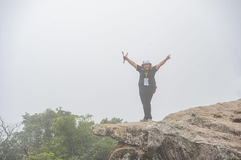 ทานอาหารกลางวันเสร็จเรียบร้อยเดินทางต่อไป ชมความงามของทุ่งดอกกระเจียว ถ่ายรูปหมู่กันที่ป้าย อุทยานแห่งชาติป่าหินงาม หน้าทางเข้าอุทยานฯ แล้วขึ้นรถรางไปชมความงามของทุ่งดอกกระเจียว ที่จะบานตามธรรมชาติทั้งแต่เดือนกรกฎาคมถึงเดือนสิงหาคม ทุ่งดอกกระเจียว อุทยานแห่งชาติป่าหินงาม ที่ท่านกำลังจะลงไปชมต่อจากนี้ ดอกกระเจียวจะบานในช่วงหน้าฝน ตั้งเดือนกรกฎาคมถึงเดือนสิงหาคม