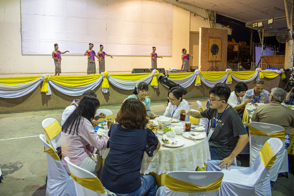 ช่วงเย็นหลังจากไปกราบขอพร อนุสาวรีย์เจ้าพ่อพระยาแล ที่สี่แยกกลางเมืองชัยภูมิแล้วก็มาทานอาหารมื้อค่ำที่ ศูนย์เยาวชนเทศบาลเมืองชัยภูมิ โดยมี นายผดุงศักดิ์ แสงเพชร รองนายกเทศบาลเมืองชัยภูมิ พร้อมด้วย นายสุทธิพงษ์ เผื่อนภิภพ รองประธานสภาอุตสาหกรรมท่องเที่ยวแห่งประเทศไทย (สทท.) นางณัฏฐ์ชุดา นันทนิ ผู้อำนวยการสำนักงานท่องเที่ยวและกีฬาจังหวัดชัยภูมิ นายกันตพงษ์ ธนเนืองโรจน์ นายกสมาคมส่งเสริมธุรกิจท่องเที่ยวไทย กล่าวต้อนรับนักท่องเที่ยว