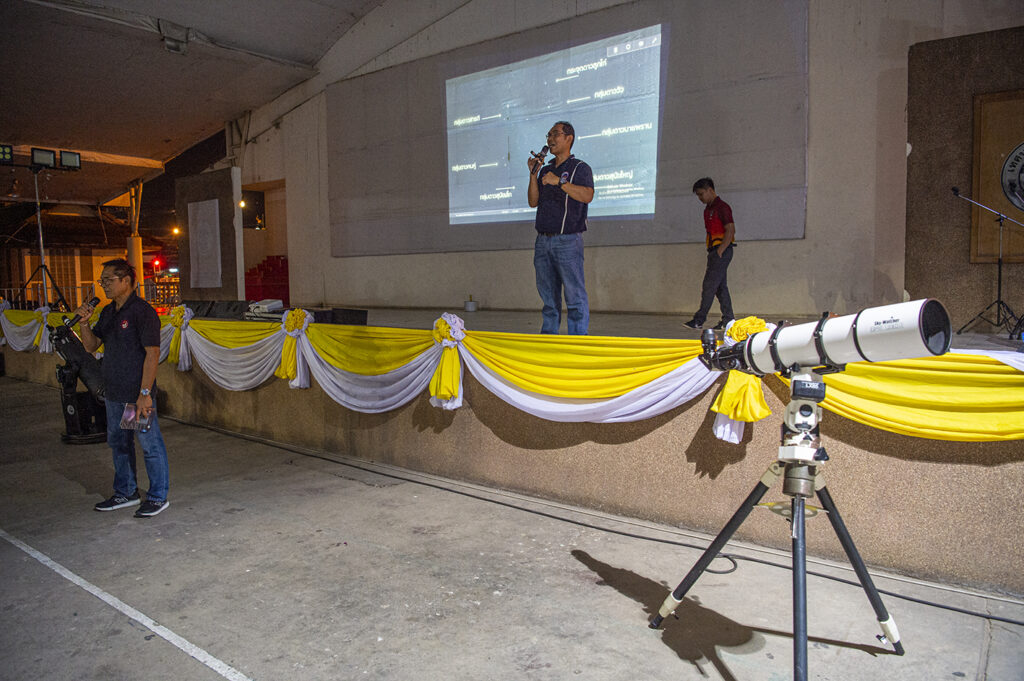 คืนนี้ฟ้าฝนไม่เป็นใจ ท้องฟ้าเต็มไปด้วยเมฆฝน ทีมสต๊าฟจึงย้ายสถานที่การดูดาว จากที่วัดศิลาอาสน์ มาไว้ที่หอประชุมเทศบาลเมืองชัยภูมิ และจัดกิจดูดาวหลังอาหารเย็นไปเลย เพื่อความสะดวกของนักท่องเที่ยว และยังไม่ต้องรับความเสี่ยงจากสภาพฝนฟ้าอากาศอีด้วย